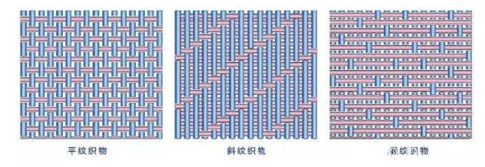 平紋織物:平紋組織的經紗和緯紗以一上一下的規律交織。也就是經緯紗每隔一根紗就交錯一次,所以交織點最多,紗線屈曲點最多,使織物堅牢、耐磨、硬挺、平整,但彈性較小,光澤一般,平紋織物密度不可能太高,較為輕薄,耐磨性較好,透氣性較好。