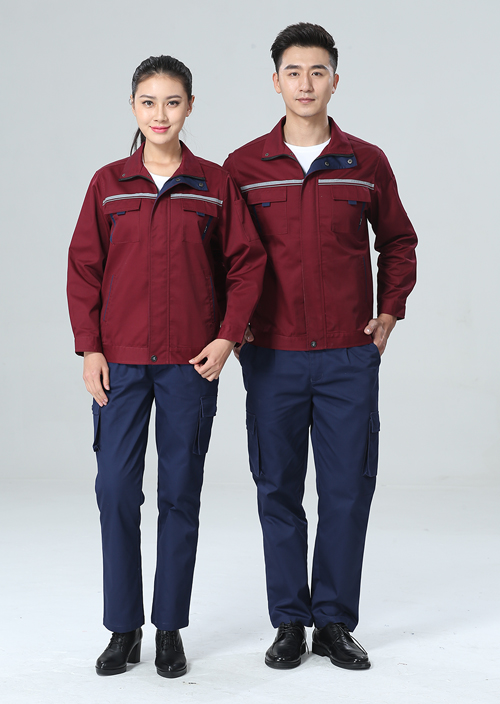 • 產品簡介:帶反光條長袖棗紅色春秋工作服008