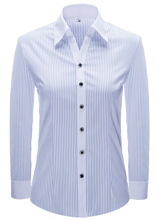 品名:女長(zhǎng)袖v領(lǐng)襯衣;版型:修身版;貨號(hào):YW3006 ;面料:Y3006;顏色:藍(lán)色寬細(xì)堅(jiān)條 ;Fabric:C30/T48/TS22